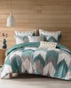 | Ink+ivy Full/Queen 1 Comforter: 88"W x 92"L 2 Standard Shams: 20"W x 26"L (2) Comforter/Sham: 200TC cotton, printed, 200TC solid cotton reverse, 250gsm polyester filling Mid-Century Style Includes 3 Piece(s) MACHINE WASH COLD, GENTLE CYCLE, AND SEPARATELY. DO NOT BLEACH. TUMBLE DRY LOW, REMOVE PROMPTLY, DO NOT IRON. IF THERE IS NO FREE MOVEMENT IN THE WASHER OR DRYER, USE LARGE CAPACITY COMMERCIAL WASHER/DRYER. Elevate the beauty and style of your bedroom with the INK+IVY Alpine Comforter Mini Set. This cotton comforter set flaunts a sophisticated ikat chevron print on the face with a solid reverse to create a striking modern and elegant look. The 2 matching shams coordinate with the design of the cotton comforter to complete this dynamic bedding set. This comforter set is OEKO-TEX certified, meaning it does not contain any harmful substances or chemicals, and uses an antimicrobial treatment that provides built-in freshness protection, reducing the growth of odor causing bacteria to keep fabric lasting longer. Euro shams and decorative pillows are sold separately. |