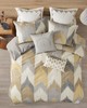 | Ink+ivy Full/Queen 1 Comforter: 88"W x 92"L 2 Standard Shams: 20"W x 26"L (2) Comforter/Sham: 200TC cotton, printed, 200TC solid cotton reverse, 250gsm polyester filling Mid-Century Style Includes 3 Piece(s) MACHINE WASH COLD, GENTLE CYCLE, AND SEPARATELY. DO NOT BLEACH. TUMBLE DRY LOW, REMOVE PROMPTLY, DO NOT IRON. IF THERE IS NO FREE MOVEMENT IN THE WASHER OR DRYER, USE LARGE CAPACITY COMMERCIAL WASHER/DRYER. Elevate the beauty and style of your bedroom with the INK+IVY Alpine Comforter Mini Set. This cotton comforter set flaunts a sophisticated ikat chevron print on the face with a solid reverse to create a striking modern and elegant look. The 2 matching shams coordinate with the design of the cotton comforter to complete this dynamic bedding set. This comforter set is OEKO-TEX certified, meaning it does not contain any harmful substances or chemicals, and uses an antimicrobial treatment that provides built-in freshness protection, reducing the growth of odor causing bacteria to keep fabric lasting longer. Euro shams and decorative pillows are sold separately. |