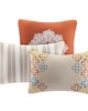 | Madison Park Full/Queen 1 Quilt: 90"W x 90"L 2 Standard Shams: 20"W x 26"L (2) 1 Decorative Pillow: 16"W x 16"L 2 Decorative Pillow: 12"W x 18"L (2) Quilt/Sham: 100% polyester micro fiber brushed printed fabric on face, solid polyester brushed fabric back, cotton fill, all over quilted with self fabric binding, prewash finish Pillow: 100% polyester micro fiber brushed fabric cover, poly fill Global Inspired Style Includes 6 Piece(s) Machine wash cold, gentle cycle, and separately. Do not bleach. Tumble dry low, remove promptly. Do not iron. If there is no free movement in the washer or dryer, use large capacity commercial washer/dryer. Update your bedroom with a fresh new look in the Madison Park Tissa 6 Piece Reversible Quilt Set. These neutral colors and pop of rusty orange are printed on polyester microfiber for a soft hand feel on the face and the reverse is a solid ivory brushed polyester fabrication. Three decorative pillows feature embroidery and piecing details to add dimension and a pop of details to the top of bed. Items in the set may come in a rolled or compressed packaging, which will need to be fluffed up or steam ironed before use to remove wrinkles. |