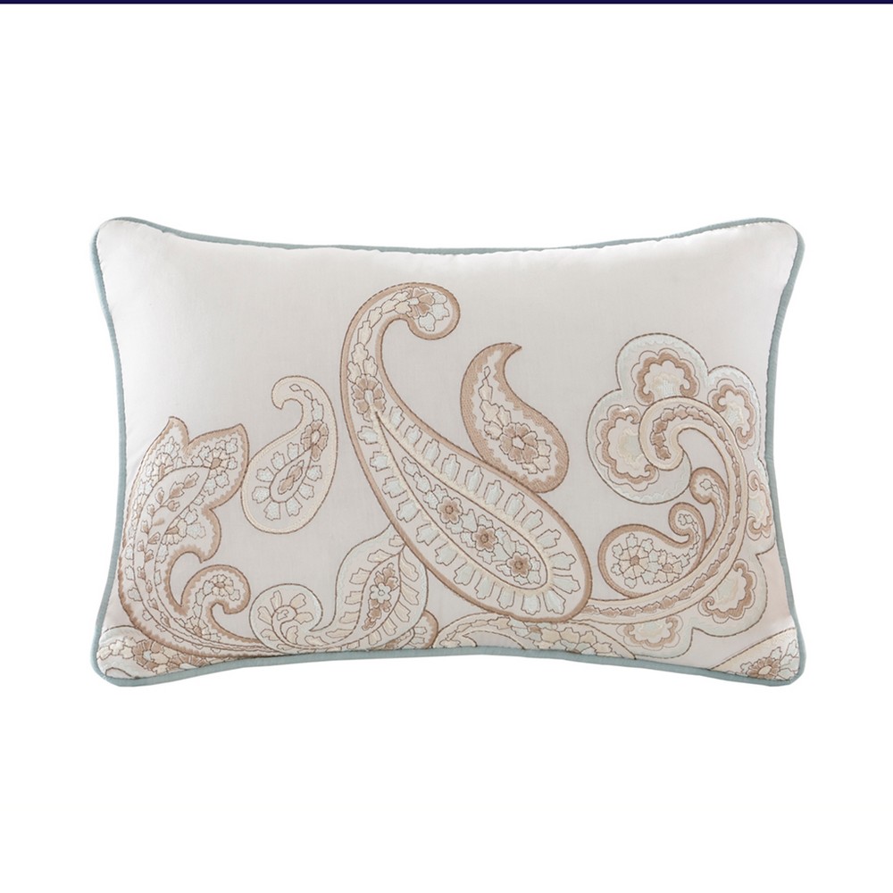 The Madison Park Pure Ronan Collection creates an organic look and feel to your space. The soft blue is the perfect base for this updated paisley design, while a solid blue reverse complements the top of the bed to create a restful oasis in your bedroom. Printed on 200 thread count cotton, this set includes a quilt, two shams and one decorative pillow. Machine washable for easy care, items in the set may come in a rolled or compressed packaging, which will need to be fluffed up or steam ironed before use to remove wrinkles.