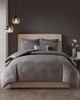 | N Natori King/Cal King 1 Comforter: 110"W x 96"L 2 King Shams: 20"W x 36"L (2) Comforter and sham Face: Poly/Cotton yarn dyed fabric pieced with cotton percale binding; Reverse: percale solid. Comforter filling: 100% polyester 300gsm. Hidden bartacking. Transitional Style Includes 3 Piece(s) Machine Washable Express your unique style with yarn dyed textural appeal of the N Natori Hanae 3 Piece Comforter Set. The oversized and overfilled grey comforter flaunts a textured fabric that adds dimension to the top of the bed. Two matching shams feature a textured face with a solid reverse to pair beautifully with the comforter, completing the luxurious bedding set. With a fine attention to detail, this comforter set provides a glamorous update for your bedroom and is machine washable for easy care. Complete the look with the coodinating Hanae bedding accessories - Euro shams and decorative pillows that are sold separately. This bedding set may come in rolled or compressed packing and will need to be fluffed up. |