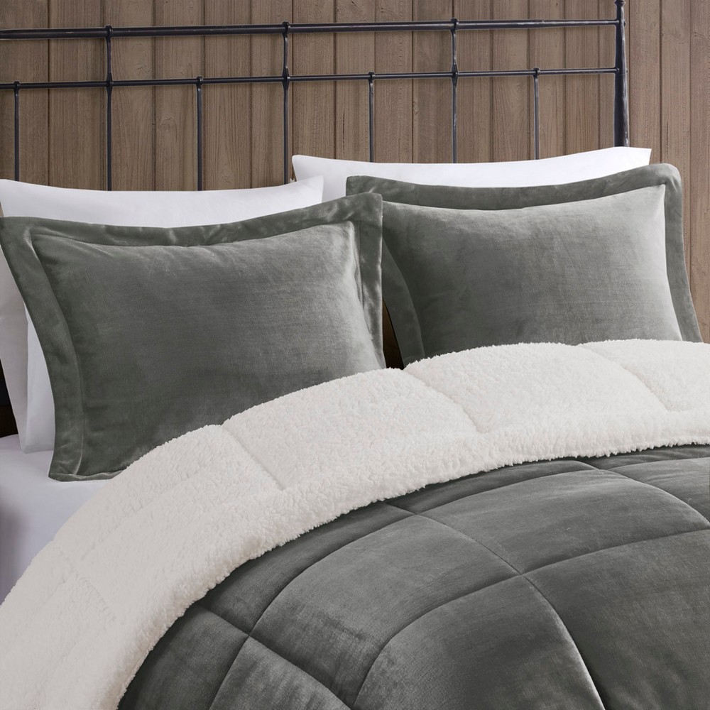 Alton Plush to Sherpa Down Alternative Comforter Set Charcoal Ivory Full Queen