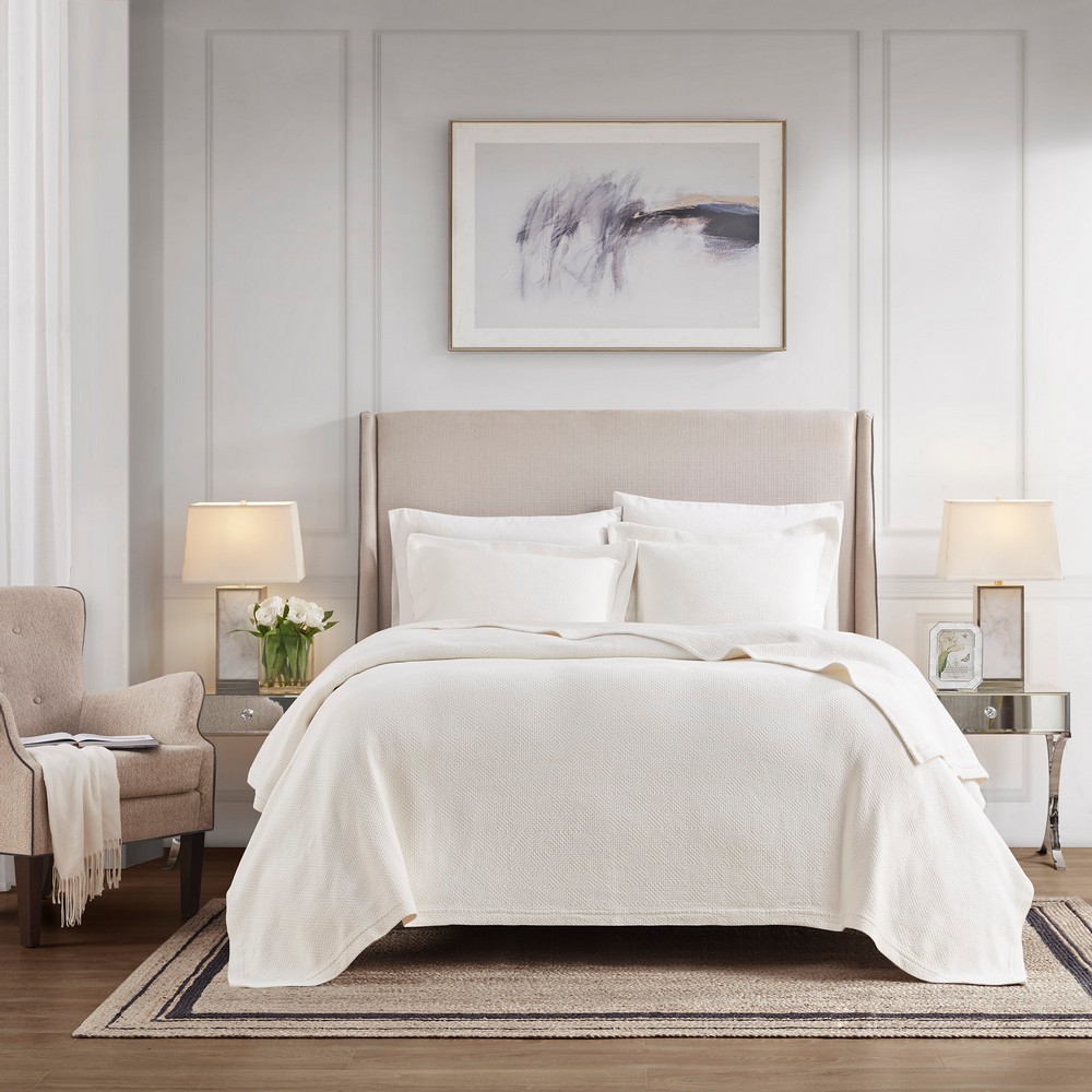 | Croscill Home Full/Queen 1 Coverlet: 92"W x 96"L 2 Standard Shams: 20"W x 26"L (2) 100% cotton matelasse stone washed, sham YKK hidden zipper closure Transitional Style Includes 1 Piece(s) Machine washable The matelasse texture made of natural cotton is woven and tailored by local craftsmen working under a family factory in Portugal. Their trained expertise and high-leveled attention to detail birthed a high quality product we are proud to introduce. The fabric is stone washed to enhance the softness and can be paired well with Croscill Home duvet collections or used as the main bed cover. |