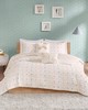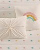 | Urban Habitat Kids Twin 1 Quilt: 68"W x 88"L 1 Standard Sham: 20"W x 26"L 1 Decorative Pillow: 12"W x 16"L 1 Decorative Pillow: 16"W x 16"L Quilt/Sham: 100% cotton, with all over jacquard pompoms in multi colors, cotton solid reverse, polyester fill. Pillow: Cotton shell and polyester filling Shabby Chic Style Includes 4 Piece(s) Machine Wash Create a cute and cozy look in your child’s bedroom with the Urban Habitat Kids Callie Cotton Jacquard Pom Pom Quilt Set. This cotton quilt features an all-over jacquard pom pom design that adds texture, for a shabby chic look. Matching shams (1 for Twin Sizes) pair perfectly with the quilt, while a square and an oblong decorative pillow complete the adorable kid’s quilt set. Machine washable, this bedding set is also OEKO-TEX certified, meaning it does not contain any harmful substances or chemicals, and uses an antimicrobial treatment that provides built-in freshness protection, reducing the growth of odor causing bacteria to keep fabric lasting longer. Items in the set may come in a rolled or compressed packaging, which will need to be fluffed up or steam ironed before use to remove wrinkles. |