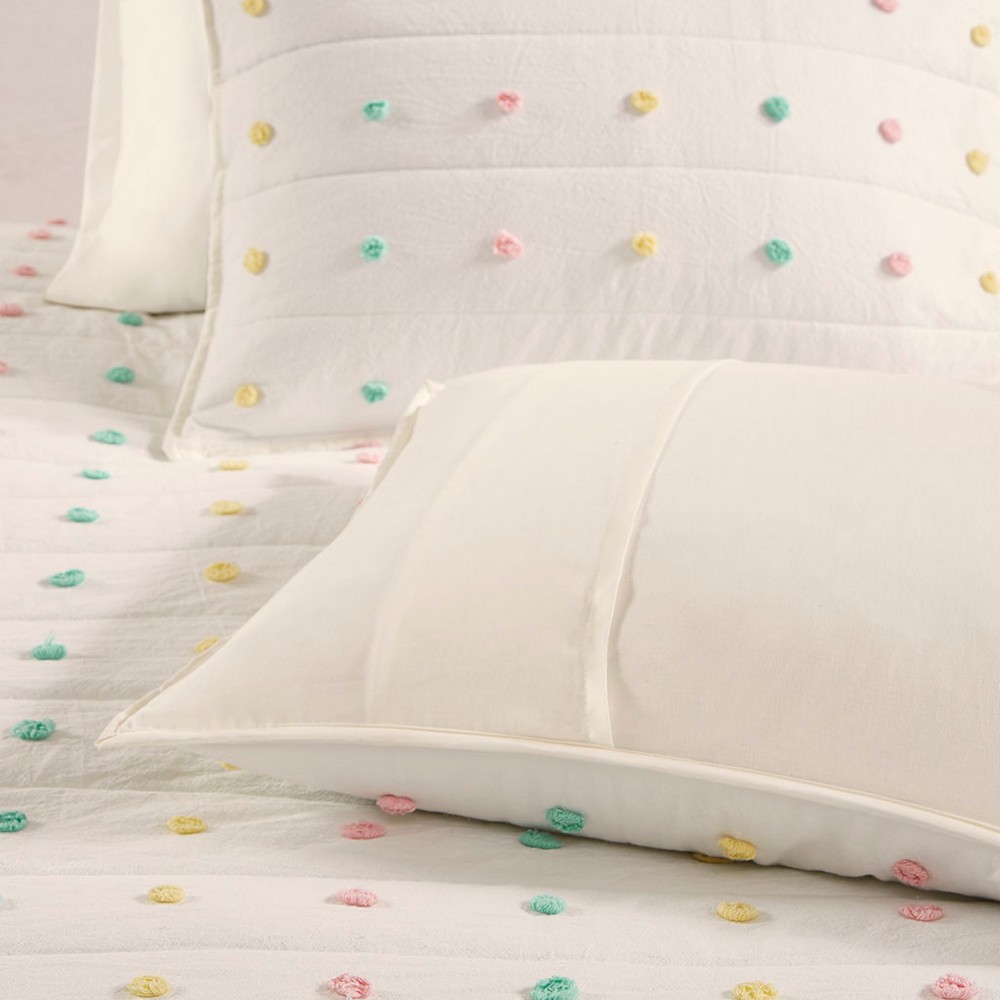Callie Pom Pom Cotton Jacquard Quilt Set with Throw Pillows Multi Twin