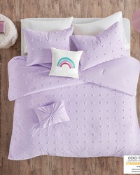 Olliix Callie Cotton Jacquard Pom Pom Comforter Set Lavender