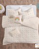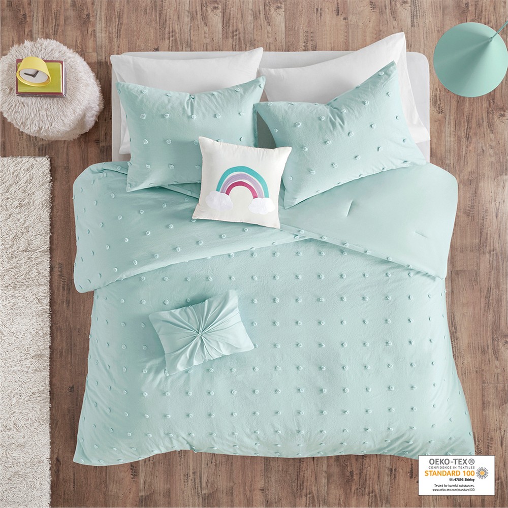 | Urban Habitat Kids Twin 1 Comforter: 68"W x 88"L 1 Standard Sham: 20"W x 26"L 1 Decorative Pillow: 12"W x 16"L 1 Decorative Pillow: 16"W x 16"L Comforter/Sham: 100% cotton, with all over woven jacquard pompoms on face, cotton solid reverse; 100% polyester filling. Pillow: cotton cover and poly fill Shabby Chic Style Includes 4 Piece(s) Machine Wash Create a cute and cozy look in your child’s bedroom with the Urban Habitat Kids Callie Cotton Jacquard Pom Pom Comforter Set. This cotton comforter features an all-over jacquard pom pom design that adds texture, for a shabby chic look. Matching shams (1 for Twin Sizes) pair perfectly with the comforter, while a square and an oblong decorative pillow complete this adorable kid’s comforter set. Machine washable, this bedding set is also OEKO-TEX certified, meaning it does not contain any harmful substances or chemicals, and uses an antimicrobial treatment that provides built-in freshness protection, reducing the growth of odor causing bacteria to keep fabric lasting longer. |
