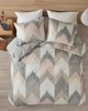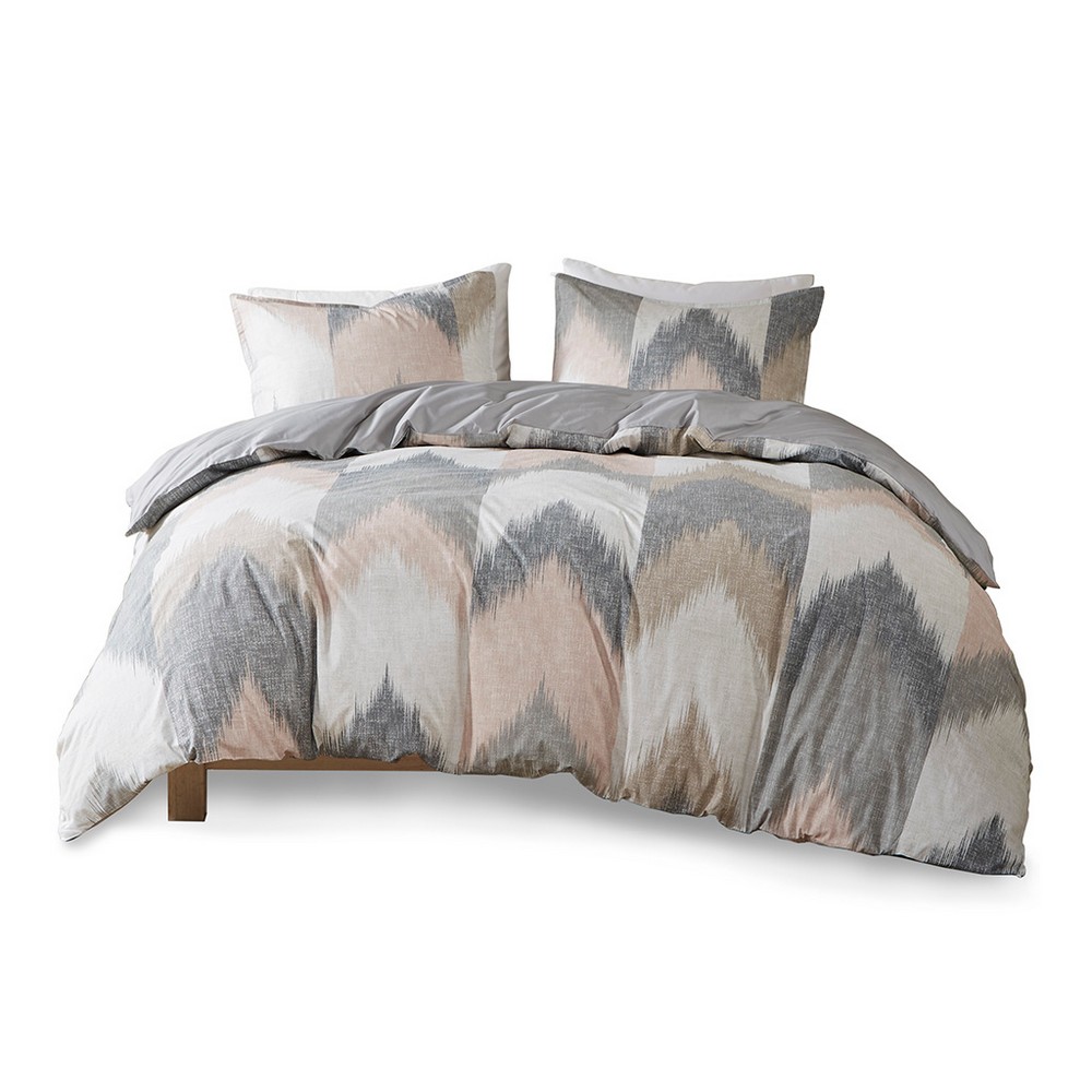 | Ink+ivy King/Cal King 1 Duvet Cover: 104"W x 92"L 2 King Shams: 20"W x 36"L (2) Duvet Cover/Sham: 100% cotton, printed, solid cotton reverse, button closure, with ties on 4 inner corners Mid-Century Style Includes 1 Piece(s) Machine Washable Elevate the beauty and style of your bedroom with the INK+IVY Alpine Duvet Cover Mini Set. This cotton duvet cover set flaunts a sophisticated ikat chevron print on the face with a solid reverse to create a striking modern and elegant look. The 2 matching shams coordinate with the design of the cotton duvet cover to complete this dynamic bedding set. This duvet cover set is OEKO-TEX certified, meaning it does not contain any harmful substances or chemicals, and uses an antimicrobial treatment that provides built-in freshness protection, reducing the growth of odor causing bacteria to keep fabric lasting longer. A button closure allows you to place a padded insert within the duvet cover and internal corner ties help prevent it from shifting (Insert is NOT included). Euro shams and decorative pillows are sold separately. |