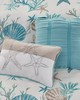 | Madison Park Full/Queen 1 Duvet Cover: 90"W x 90"L 2 Standard Shams: 20"W x 26"L (2) 1 Decorative Pillow: 16"W x 16"L 1 Decorative Pillow: 12"W x 18"L 1 Decorative Pillow: 18"W x 18"L Duvet Cover/Sham: 100% cotton sateen printed face, cotton/polyester reverse Pillows: 100% cotton/polyester shell, polyester filling Coastal Style Includes 6 Piece(s) Machine washable, Pillow spot clean For a vibrant coastal update to your bedroom, the Madison Park Pebble Beach 6 Piece Cotton Sateen Duvet Cover Set is perfect for you! This coastal duvet cover features all over printed shells, starfish, and coral in aqua, teal, and taupe colors to brighten your space. The soft cotton/polyester reverse is a solid taupe that adds a touch of neutral color that complements the coastal design. The 2 matching shams beautifully coordinate with the cotton duvet cover to complete the coastal look. Also included are 3 decorative pillows with coastal embroidery details that add dimension to the top of the bed. This cotton duvet cover set is OEKO-TEX certified, meaning it does not contain any harmful substances or chemicals to ensure quality comfort and wellness. Machine washable for easy care, this luxurious costal bedding provides a refreshing and relaxing addition to your bedroom decor. A button closure at the foot end secures a padded insert within the duvet cover and inside corner ties prevent it from shifting (insert is NOT included). |