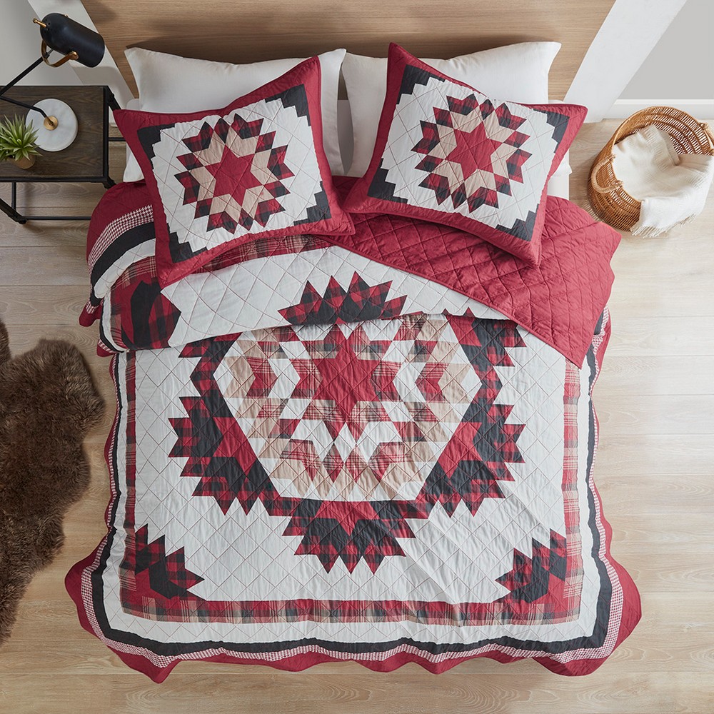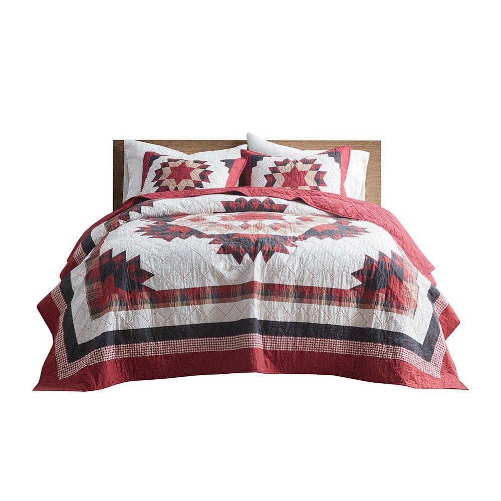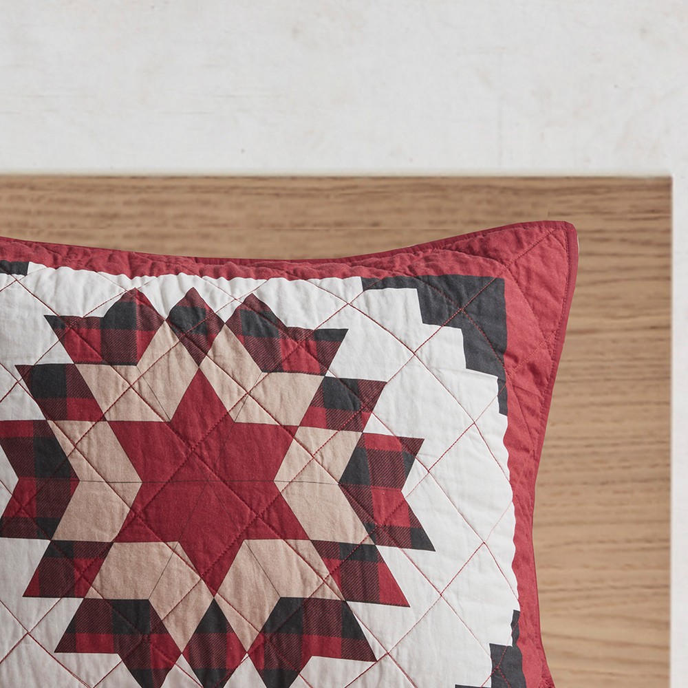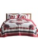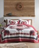 | Woolrich Full/Queen 1 Quilt: 92"W x 96"L + 0.5"D 2 Shams: 20"W x 26"L + 0.5"D (2) Quilt/sham: face 100% cotton print, revese solid dyed; 1/2" binding all around quilt and sham Quilt/sham filling: 230GSM cotton batting (90% cotton 10% polyester) Sham with 40 GSM non woven lining Pre Washed Lodge/Cabin Style Includes 3 Piece(s) Machine washable Easily create a cozy cabin look in your bedroom with the Woolrich Compass Quilt Mini Set. This cotton quilt features a large medallion in the center, in red, black, and brown colors, framed by accenting borders, for a charming country look. The solid red reverse complements the pattern on the bed, while end-to-end diamond quilting adds texture and dimension. Coordinating shams also showcase a medallion motif that pairs handsomely with the quilt. Prewashed for comfort and durability, this quilt mini set has 90% cotton filling to provide exceptional warmth and a soft feel. This quilt mini set is machine washable and OEKO-TEX certified, meaning it does not contain any harmful substances or chemicals to ensure quality comfort and wellness. |