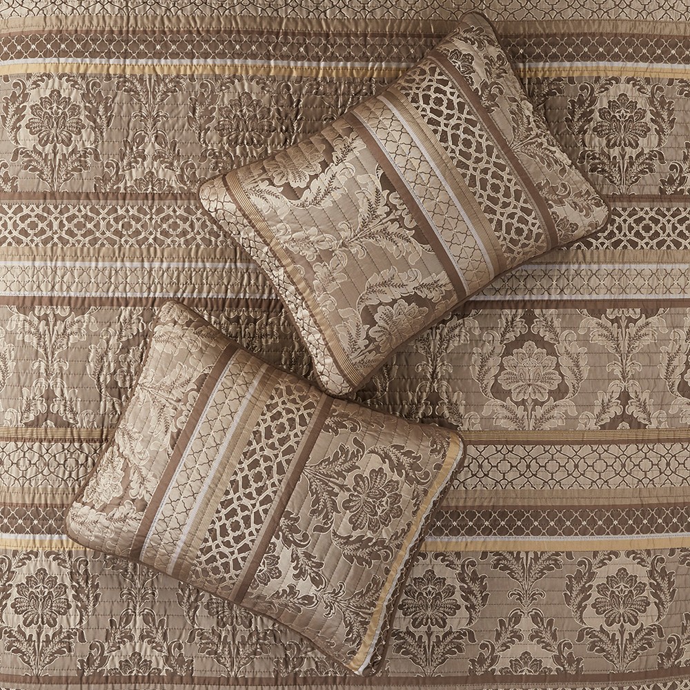 Bellagio 6 Piece Jacquard Quilt Set with Throw Pillows Brown Gold King