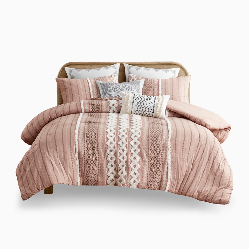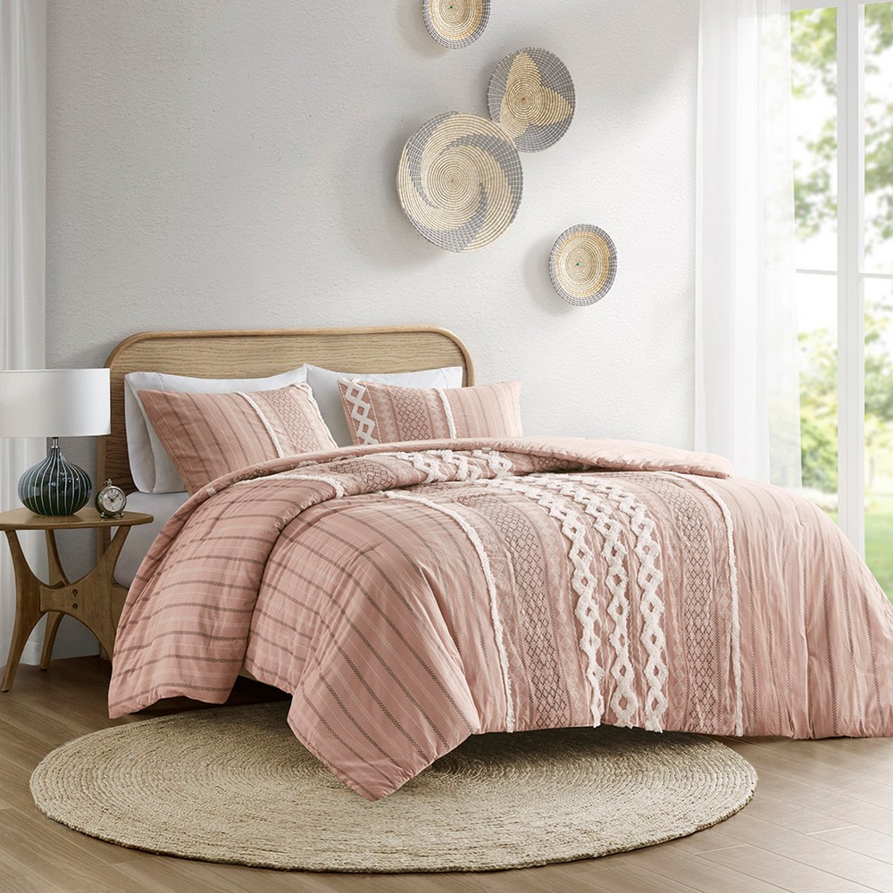 Imani Cotton Printed Comforter Set with Chenille Blush Full Queen