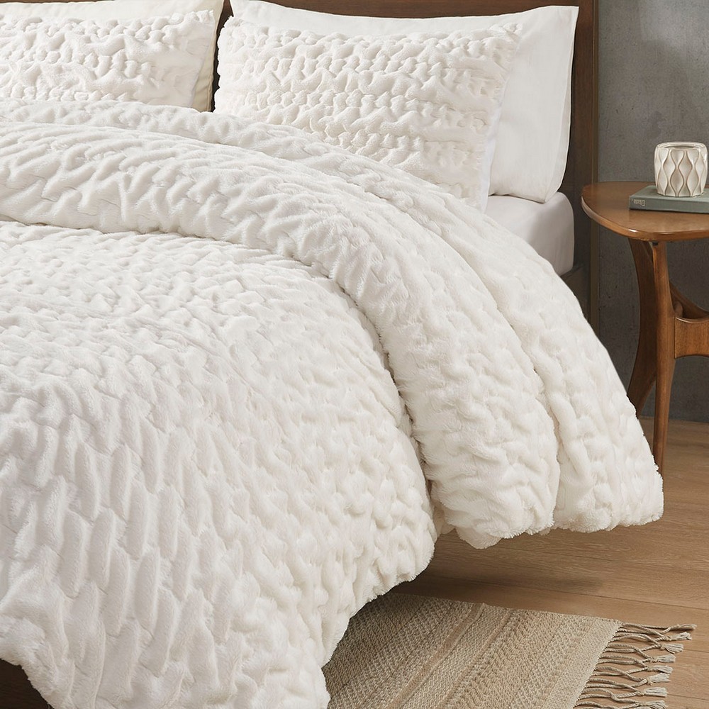 Blair Ruched Fur Down Alternative Comforter Set Ivory King