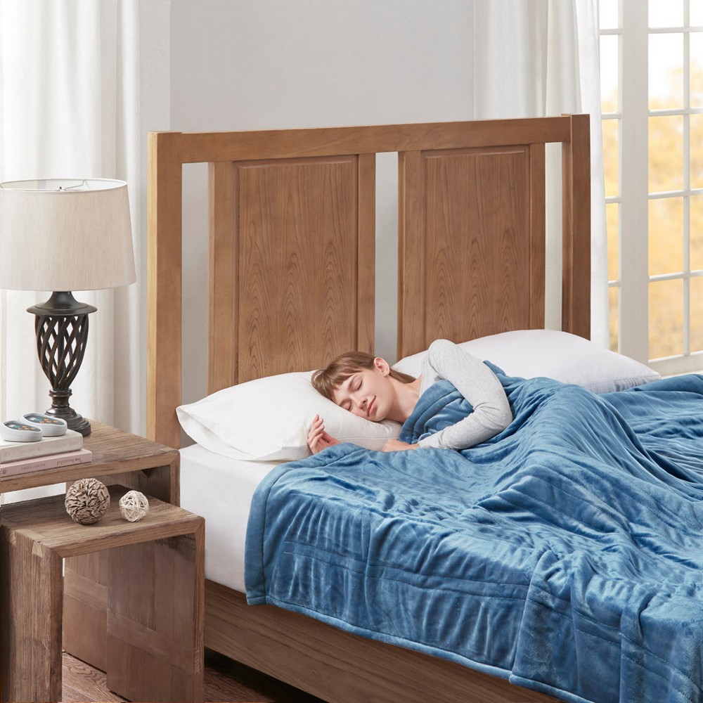 Ultra Soft Plush Reverses to Berber Heated Blanket Blue Full
