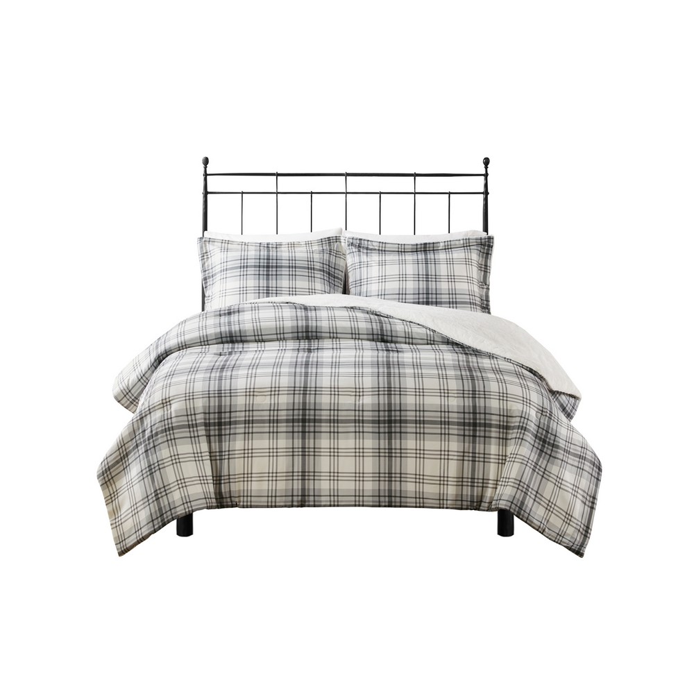 Bernston Faux Wool to Faux Fur Down Alternative Comforter Set Gray Plaid King