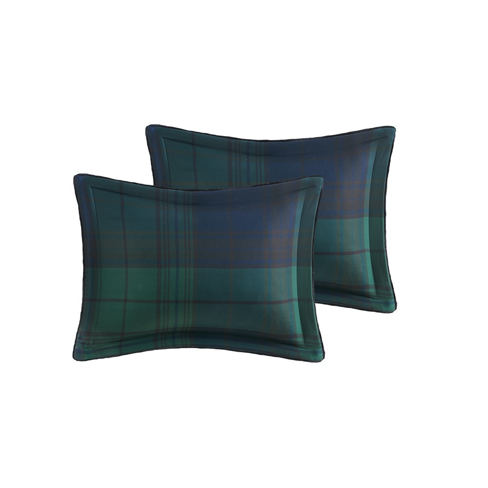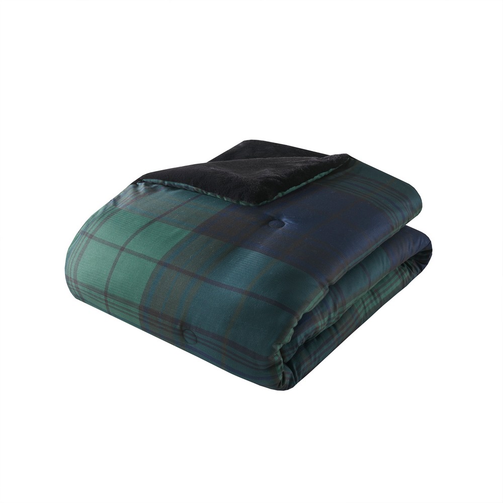 Bernston Faux Wool to Faux Fur Down Alternative Comforter Set Green Plaid King