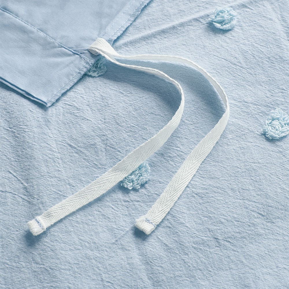 | Urban Habitat Full/Queen 1 Duvet Cover: 88"W x 92"L 2 Standard Shams: 20"W x 26"L (2) 2 Euro Shams: 26"W x 26"L + 0.5"D (2) 1 Decorative Pillow: 18"W x 18"L 1 Decorative Pillow: 12"W x 18"L Duvet Cover/Sham: 100% cotton jacquard fabric on the face, 100% cotton reverse Pillow: 100% cotton cover with polyester filling Euro sham: 100% cotton solid with quilting top Shabby Chic Style Includes 7 Piece(s) Machine Wash. Spot Clean pillows The Urban Habitat Brooklyn Cotton Jacquard Duvet Cover Set features small tufted chenille dots that create a fresh shabby chic look. This duvet cover set brings a soft and charming update to your bedroom, while matching shams (1 in Twin/TwinXL) and quilted Euro shams (1 in Twin/TwinXL) complement the cotton jacquard duvet cover set. Two decorative pillows are also included, adding the finishing touches. This duvet cover set is also OEKO-TEX certified and is machine washable for easy care. A button closure at the foot end allows you to place a padded insert within the duvet cover and internal corner ties prevent it from shifting. Inserts for duvet covers are sold separately. |