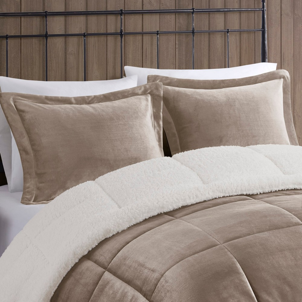 Alton Plush to Sherpa Down Alternative Comforter Set Taupe Ivory King