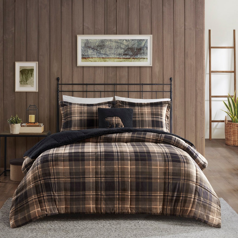 Alton Plush to Sherpa Down Alternative Comforter Set Brown Black King