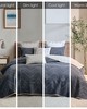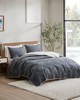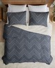 | Ink+ivy Full/Queen 1 Quilt: 88"W x 92"L 2 Standard Shams: 20"W x 26"L + 0.5"D (2) Quilt/Sham: Cotton percale, 90% cotton, 10% other fiber filling, sham with 0.5" piping all around and overlap openning at back. Quilt with embroidered chevron pattern. With anti-microbial treatment. Casual Style Includes 3 Piece(s) MACHINE WASH COLD, GENTLE CYCLE, AND SEPARATELY. DO NOT BLEACH. TUMBLE DRY LOW, REMOVE PROMPTLY, DO NOT IRON. IF THERE IS NO FREE MOVEMENT IN THE WASHER OR DRYER, USE LARGE CAPACITY COMMERCIAL WASHER/DRYER. The INK+IVY Pomona 3 Piece Quilt Mini Set offers a modern casual update to your bedroom. This navy cotton quilt features an embroidered chevron pattern in a neutral taupe with a solid taupe on the reverse, for an elevated cozy look. The 2 matching shams repeat the design of the quilt to complete the bedding set. This quilted cotton quilt set uses an antimicrobial treatment that provides built-in freshness protection, reducing the growth of odor causing bacteria to keep fabric lasting longer. Euro shams and pillows sold separately. |