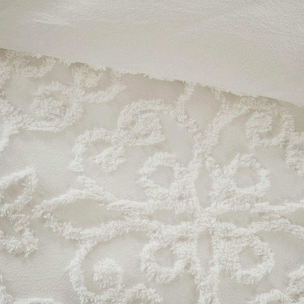 Sabrina 3 Piece Tufted Cotton Chenille Duvet Cover Set OffWhite King