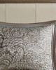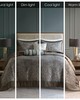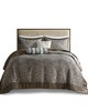| Madison Park Queen 1 Bedspread: 102"W x 118"L 2 Standard Shams: 20"W x 26"L + 2"D (2) 1 Decorative Pillow: 18"W x 18"L 1 Decorative Pillow: 6.5"W x 18"L Bedspread/Sham: 100% polyester jacquard Fill: 7oz/sq yard 90% cotton, 10% other fiber filling Pillow: 100% polyester faux silk shell, 100% polyester filling Traditional Style Includes 5 Piece(s) machine washable, spot clean pillows The Madison Park Aubrey 5 Piece Reversible Jacquard Bedspread Set provides a classic update for your bedroom. The jacquard weave is inspired from an updated paisley motif and is woven into a beautiful combination of a soft blue, taupe, and a hint of platinum for a touch of sheen to your bedding. The quilted bedspread and shams offer beautiful details with a taupe flange and blue piping. The reverse is a rich taupe color, while two decorative pillows feature pleating and embroidery details that coordinate with the top of the bed to bring the entire look together. |