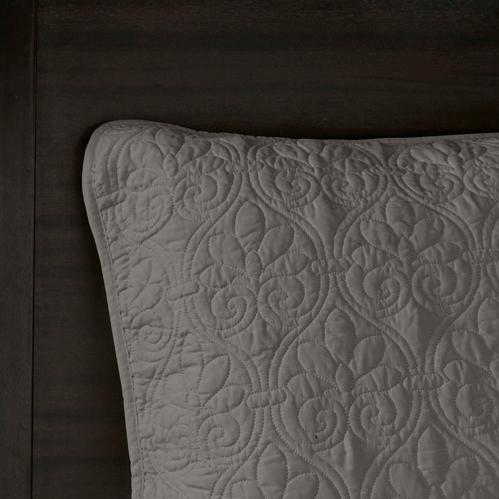 | Madison Park King 1 Bedspread: 120"W x 118"L 2 King Shams: 20"W x 36"L (2) Fabric: 100% polyester microfiber face and reverse Filling: 90% cotton, 10% olefin Pre-washed; All-over quilting Transitional Style Includes 3 Piece(s) Machine Washable The Madison Park Quebec Reversible Bedspread Set offers a charming cottage-inspired update to your bedroom. The reversible bedspread and shams (1 in Twin/TwinXL) flaunt a classic stitch pattern that creates a rich depth and texture on the face of the bedding set. Prewashed cotton filling provides added comfort and durability, while the oversized dimensions allow the bedspread to drape better. This bedspread also has an antimicrobial treatment that provides built-in freshness protection, reducing the growth of odor causing bacteria to keep fabric lasting longer. |