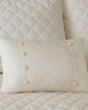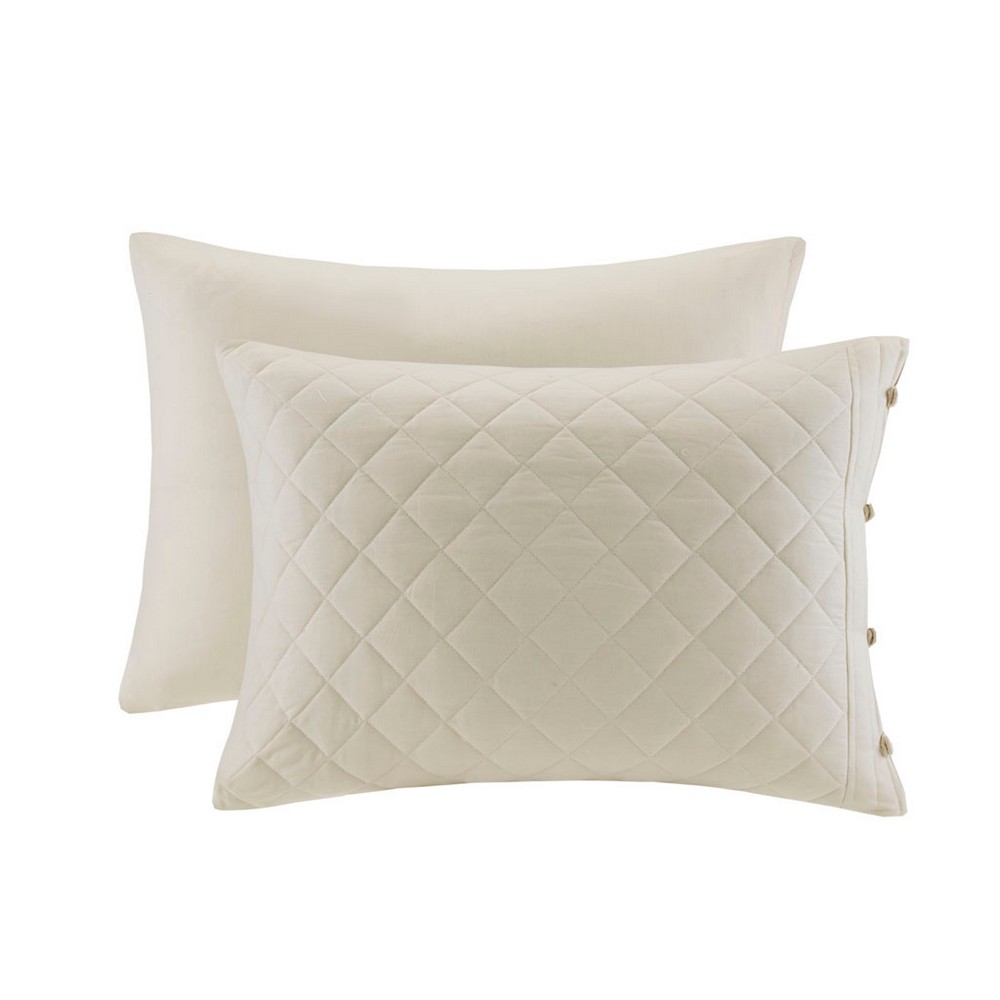 | Madison Park King 1 Bedspread: 79"W x81"L + 24"D 2 King Shams: 20"W x 36"L (2) 1 Decorative Pillow: 12"W x 18"L Bedspread/Sham: 100% cotton percale face and back with pieced edge; 100% poly fill Transitional Style Includes 4 Piece(s) Machine Washable The Madison Park Breanna 4 Piece Cotton Reversible Tailored Bedspread Set provides a luxurious transitional update to your bedroom décor. This oversized ivory bedspread set features a diamond quilting pattern and a button trim that adds a charm and dimension to the bedding set. Matching shams mirror the design of the bedspread for a fully coordinated look, while a decorative pillow provides the finishing touch. Made from 100% cotton percale, this beadspread has a 24-inch drop and is tailored to create an elegant and fitted look. |