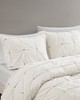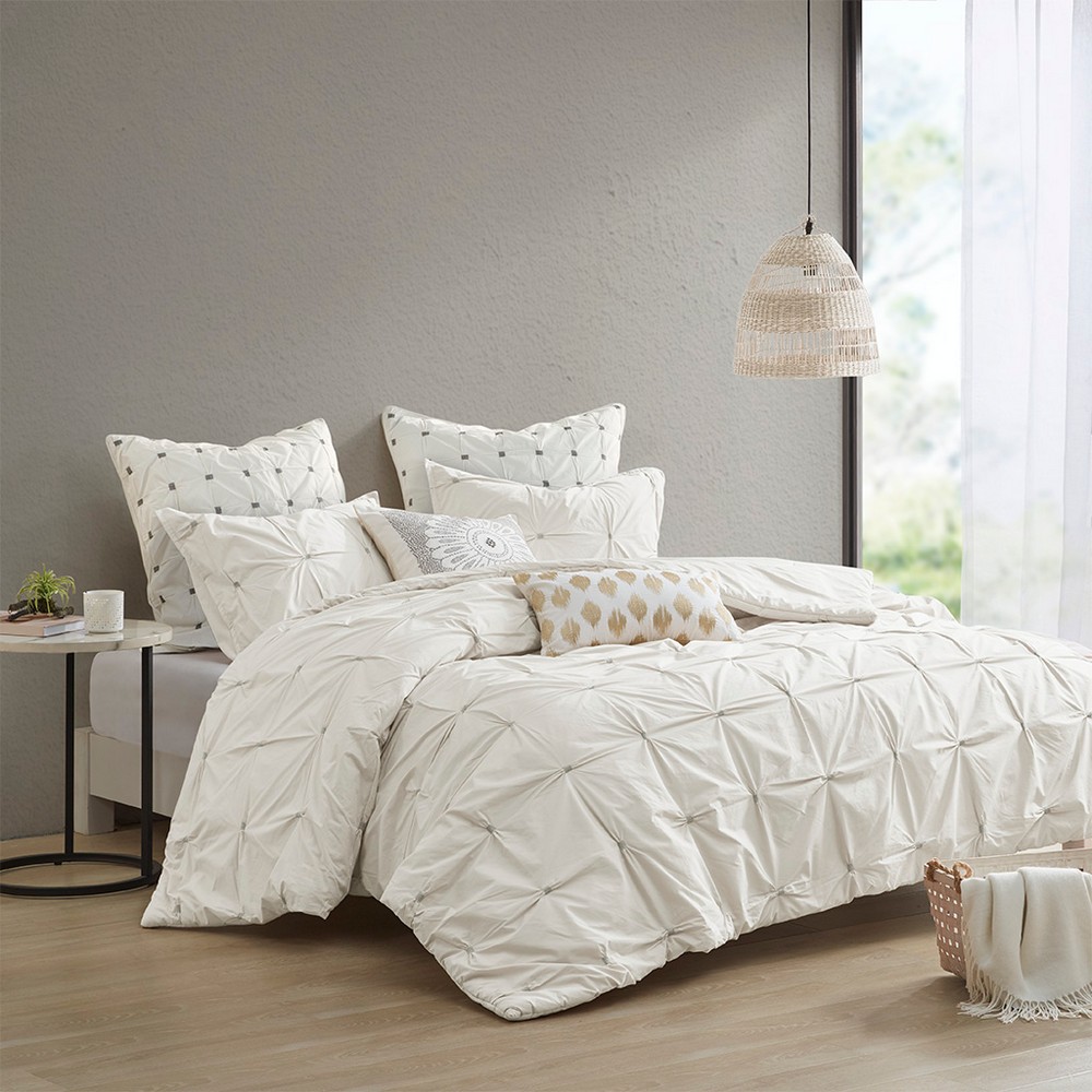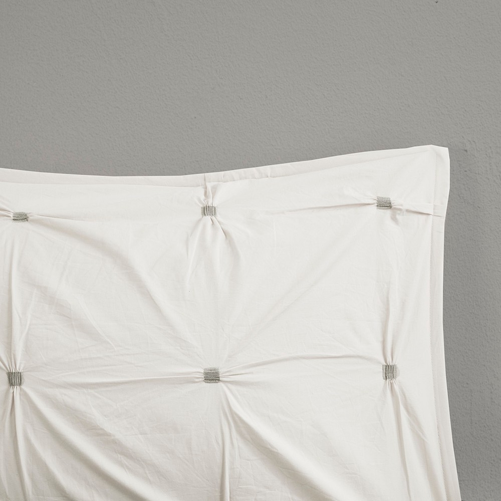 Elevate your bedroom with the INK+IVY Masie 3 Piece Elastic Embroidered Cotton Duvet Cover Set. This solid cotton duvet cover features elastic and embroidered details on the face to create a tufted-inspired design with a modern flair. The 2 matching shams handsomely pair with the cotton duvet cover to complete this modern and sophisticated bedding set. This cotton duvet cover set uses an antimicrobial treatment that provides built-in freshness protection, reducing the growth of odor causing bacteria to keep fabric lasting longer. Euro shams and decorative pillows are sold separately. A button closure allows you to place a padded insert within the duvet cover and internal corner ties help prevent it from shifting (Insert is NOT included).