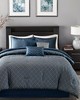 | Madison Park Queen 1 Comforter: 90"W x 90"L 2 Standard Shams: 20"W x 26"L (2) 1 Bed Skirt: 60"W x 80"L + 15"D 1 Decorative Pillow: 16"W x 16"L 1 Decorative Pillow: 18"W x 18"L 1 Decorative Pillow: 12"W x 18"L Comforter/Sham: 100% polyester jacquard, brushed polyester reverse, 270g/m2 polyester filling Bedskirt: 100% polyester polyoni drop, 100% polyester platform Pillows: 100% polyester shell, polyester filling Transitional Style Includes 7 Piece(s) MACHINE WASH COLD, GENTLE CYCLE, AND SEPARATELY. DO NOT BLEACH. TUMBLE DRY LOW, REMOVE PROMPTLY, DO NOT IRON. IF THERE IS NO FREE MOVEMENT IN THE WASHER OR DRYER, USE LARGE CAPACITY COMMERCIAL WASHER/DRYER. To update your space to a modern look, try the Madison Park Biloxi Collection. Made from polyester jacquard, this unique design is woven to look like sequins. The design has an ombre affect looking heavy in the center of the bed and spreading out towards the top and bottom of the comforter. Two matching shams share this ombre design. Three decorative pillows use unique embroidery and fabric manipulation for the perfect new look for your space. Items in the set may come in a rolled or compressed packaging, which will need to be fluffed up or steam ironed before use to remove wrinkles. |