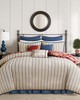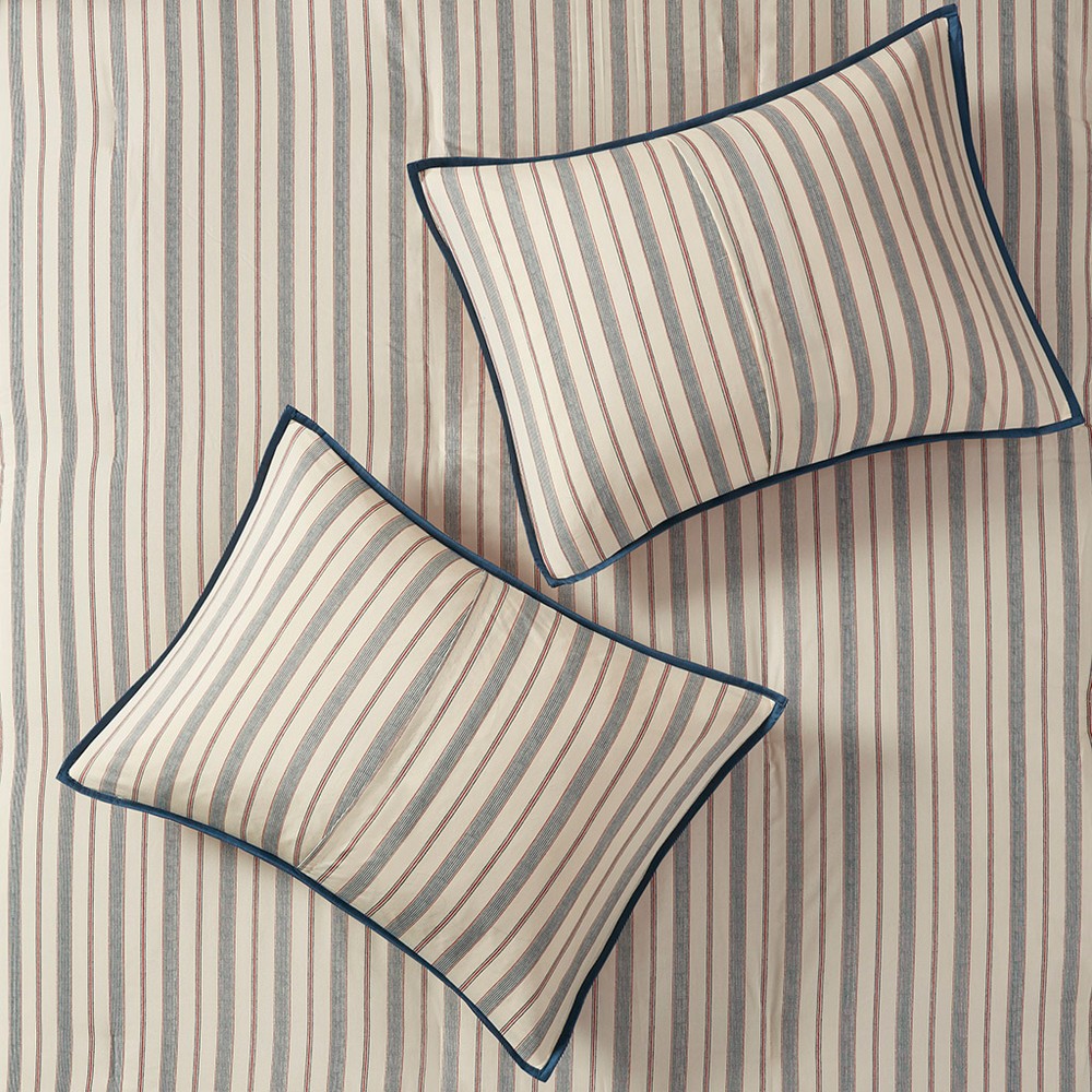 The Madison Park Lucy 9 Piece Cotton Twill Reversible Duvet Cover Set offers a cozy cottage update to your bedroom. This cotton twill duvet cover features a floral motif in a classic color scheme that flips to a complimentary striped pattern on the reverse. Two coordinating shams flaunt the same pattern as the duvet cover, while two Euro shams add a touch of color to the comforter set. Three decorative pillows with embroidery and fabric manipulation and a solid bed skirt complete this country duvet cover set. A button closure secures a comforter insert within the duvet cover and inside corner ties prevent it from shifting (insert is NOT included). This bedding set is also OEKO-TEX certified, meaning it does not contain any harmful substances or chemicals to ensure quality comfort and wellness.