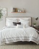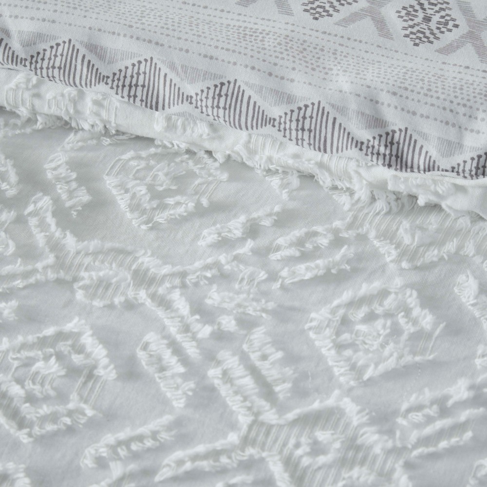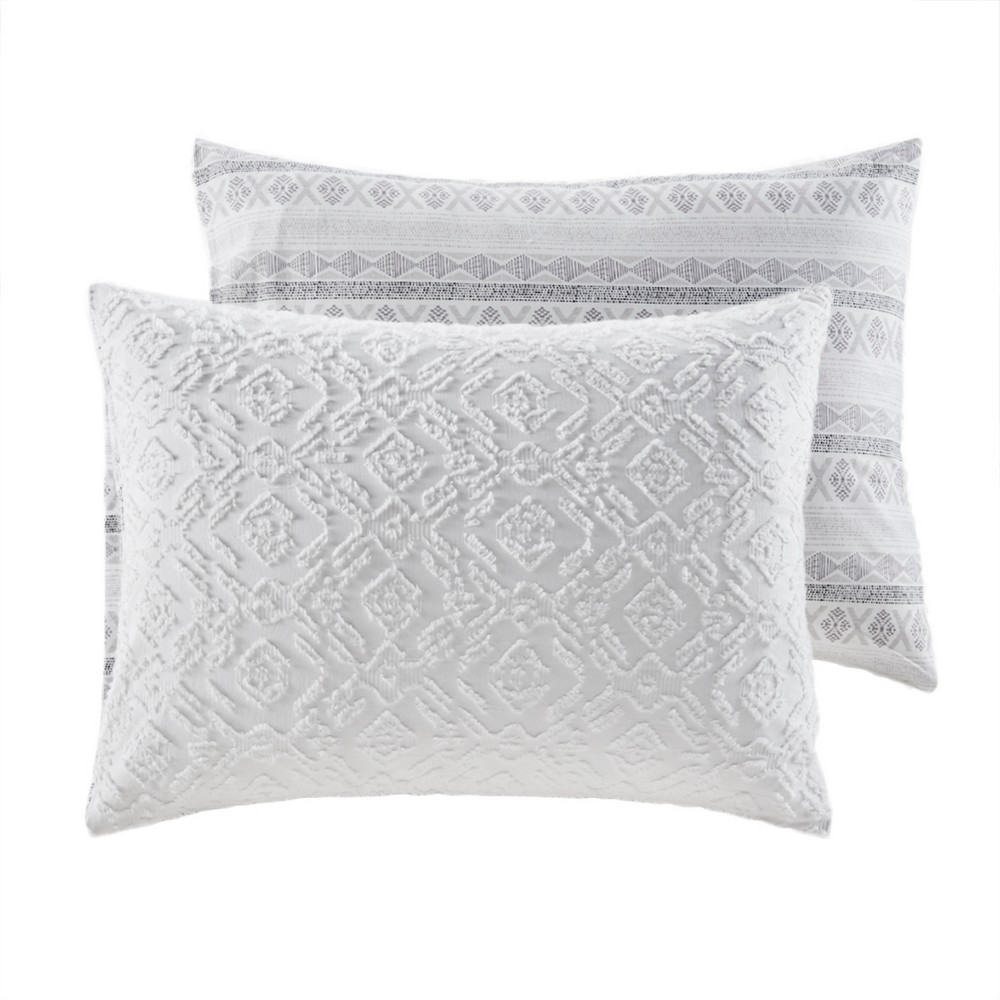 | Ink+ivy King/Cal King 1 Duvet Cover: 104"W x 92"L 2 King Shams: 20"W x 36"L(2) Duvet and Sham front: 100% cotton clipped jacq piecing with printed cotton border on 3 sides, cotton printed reverse. Button closure at bottom of duvet. Duvet cover 4 corners with inside ties. Sham with side opening. Shabby Chic Style Includes 3 Piece(s) Machine Wash Create a rich farmhouse inspired look in your bedroom with the INK+IVY Mill Valley Reversible Cotton Duvet Cover Set. The top of the reversible duvet cover features white cotton clipped jacquard in the center with a printed Aztec-inspired border, for a stunning shabby chic look. On the reverse, a grey Aztec print coordinates with the one shown on top of the bed. Two matching reversible shams showcase the clipped jacquard pattern on one side and the Aztec print on the other to fully complement the clipped jacquard duvet cover. Made from 100% cotton, this reversible duvet cover set offers great value with two distinct looks and is machine washable for easy care. Button closures allow you to place a comforter insert within the duvet cover and inside corner ties help prevent it from shifting. Insert is NOT included. |
