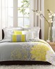 | Madison Park King/Cal King 1 Quilt: 104"W x 94"L 2 King Shams: 20"W x 36"L + 2" (2) 1 Decorative Pillow: 18"W x 18"L 1 Decorative Pillow: 16"W x 16"L 1 Decorative Pillow: 12"W x 20"L Quilt/Sham: 100% cotton, printed, cotton rich cross weave reverse, cotton filling, quilted, self fabric binding, prewash finish Square Pillow: Cotton rich cross weave, printed, piping, polyester filling Oblong Pillow: Cotton rich cross weave, pintuck, pieced, flat piping, polyester filling Transitional Style Includes 6 Piece(s) Machine Wash, Delicate and Separately. Tumble Dry Low. Spot Clean Decorative Pillows The Madison Park Lola 6 Piece Reversible Cotton Printed Coverlet Set transforms your bedroom into a beautiful and graceful space. A gorgeous floral print in a soft white and yellow hue pops against the solid grey cotton coverlet and shams for a stunning transitional look. Three decorative pillows with embroidered details and fabric manipulation add texture and dimension to the bed, featuring a yellow and grey stripe, a grey and yellow flowers on soft white, and a solid yellow color. This bedding set is also OEKO-TEX certified, meaning it is free of any harmful substances or chemicals for your comfort and wellness. |
