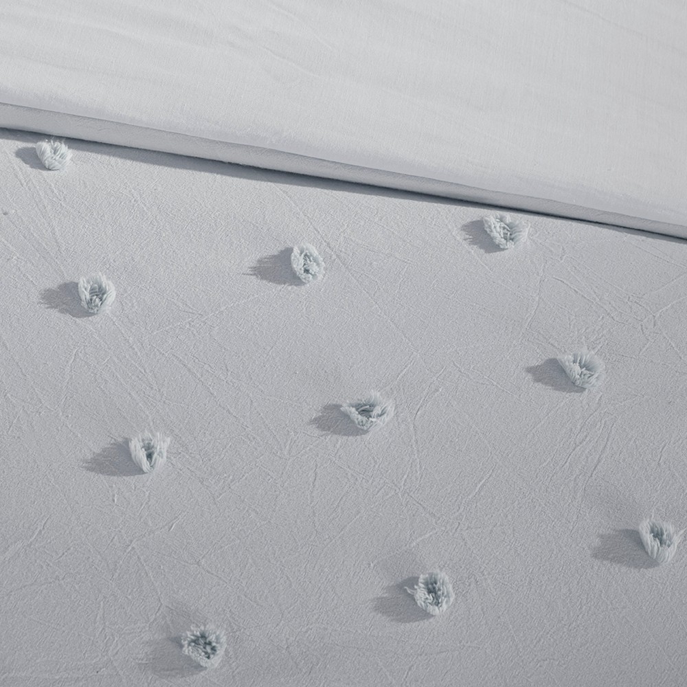 | Urban Habitat Full/Queen 1 Comforter: 88"W x 92"L 2 Standard Shams: 20"W x 26"L (2) 2 Euro Shams: 26"W x 26"L + 0.5"D (2) 1 Decorative Pillow: 18"W x 18"L 1 Decorative Pillow: 12"W x 18"L Comforter/Sham: 100% cotton jacquard fabric on the face, 100% cotton reverse, 220gsm polyester filling Pillow: 100% cotton cover with polyester filling Euro sham: 100% cotton solid with quilting top Shabby Chic Style Includes 7 Piece(s) Machine Wash The Urban Habitat Brooklyn Cotton Jacquard Comforter Set features small tufted chenille dots that create a fresh shabby chic look. This comforter set brings a soft and charming update to your bedroom, while matching shams (1 in Twin/TwinXL) and quilted Euro shams (1 in Twin/TwinXL) complement the cotton jacquard comforter set. Two decorative pillows are also included, adding the finishing touches. The hypoallergenic polyester comforter and decorative pillow filling contains no allergens and is treated to be dustproof so you can sleep soundly without any worries. This comforter set is also OEKO-TEX certified and is machine washable for easy care. |