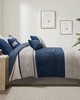The Madison Park 7 Piece Palisades Comforter Set offers you a casual alternative in fashion bedding. The reverse of the comforter is solid blue. The soft microsuede in heather grey, blue and charcoal grey is pieced together to create this beautiful bed. The decorative pillows are embroidered and pieced to add a decorative element to this simple, yet beautiful bedding collection. With hypoallergenic filling in the comforter and pillows, this stylish comforter set easily refreshes your bedroom décor and is machine washable for easy care. Items in the set may come in a rolled or compressed packaging, which will need to be fluffed up or steam ironed before use to remove wrinkles.