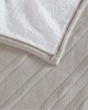 | Serta Queen 1 Heated Blanket: 84"W x 90"L Face: solid fleece, 100% polyester; Back: ivory sherpa, 100% polyester Casual Style Includes 1 Piece(s) Machine Wash The Serta Fleece to Sherpa Heated Blanket offers incredible comfort and warmth to keep you extra cozy in bed. This heated blanket features an ultra-soft fleece face with a cozy Sherpa reverse, for extra comfort. A controller with 10 heat settings provides the perfect amount of warmth, while the 1-12 hour automatic shut-off timer helps ensure your safety. Machine washable for easy care, this heated blanket brings cozy comfort and a cottage style update to your space. Twin and Full size have one controller, Queen and King size have 2 controllers. Includes manufacturer's 5-year warranty. |