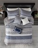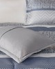 | Madison Park Cal King 1 Comforter: 104"W x 92"L 2 King Shams: 20"W x 36"L + 1.5"D (2) 1 Bed Skirt: 72"W x 84"L + 15"D 1 Decorative Pillow: 16"W x 16"L 1 Decorative Pillow: 12"W x 18"L 1 Decorative Pillow: 18"W x 18"L Poly jacqaurd, soft microfiber solid reverse comforter and shams, 8oz/sq yard polyester filling, polyester bedskirt and pillows Transitional Style Includes 7 Piece(s) Machine Washable Spot Clean Pillow Give your bedroom a new luxurious look with the Madison Park Rhapsody 7 Piece Jacquard Comforter Set. This jacquard comforter features a navy and grey stripe design of several different motifs on the face with a solid grey reverse, for a chic transitional look. The 2 matching shams complement the design of the comforter to complete this glam comforter set. Also included is a solid navy bed skirt and 3 decorative pillows with embroidery and pleated details provide the finishing touches. Machine washable for easy care, this jacquard comforter set brings a sophisticated update to your bedroom decor. Items in the set may come in a rolled or compressed packaging, which will need to be fluffed up or steam ironed before use to remove wrinkles. |
