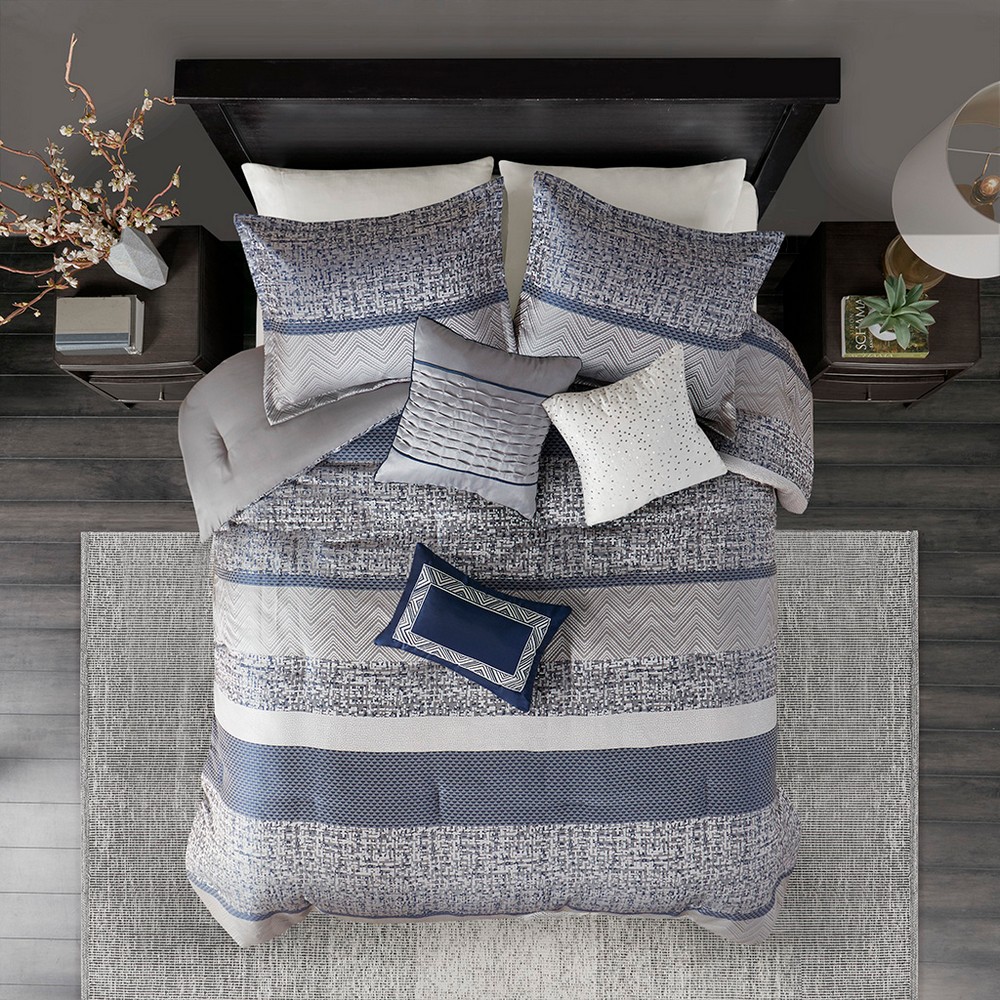 Rhapsody 7 Piece Jacquard Comforter Set Navy King