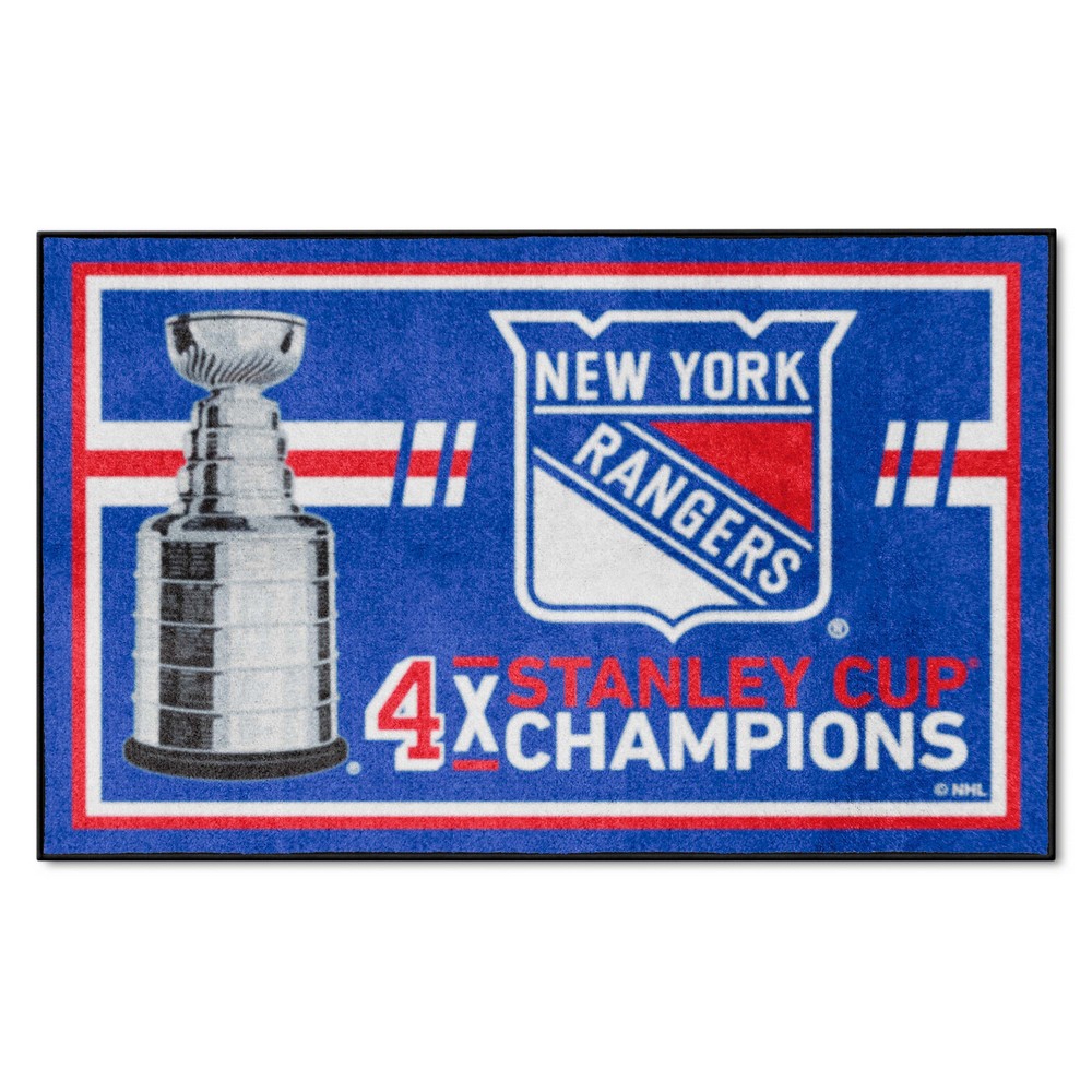 | New York Rangers Dynasty 4ft. x 6ft. Plush Area Rug 23.5 oz., 100% Nylon Face Latex backing for a durable and longer-lasting product Machine made in the USA Non-skid backing to ensure stability Vacuum regularly and spot clean Chromojet-printed in true team colors NHL - New York Rangers in New York NHL National Hockey League |