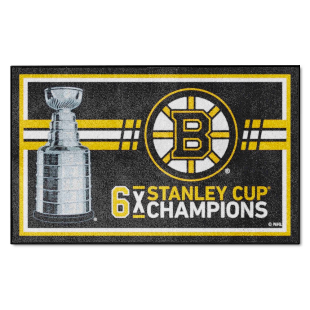 | Boston Bruins Dynasty 4ft. x 6ft. Plush Area Rug 23.5 oz., 100% Nylon Face Latex backing for a durable and longer-lasting product Machine made in the USA Non-skid backing to ensure stability Vacuum regularly and spot clean Chromojet-printed in true team colors NHL - Boston Bruins in Massachusetts NHL National Hockey League |