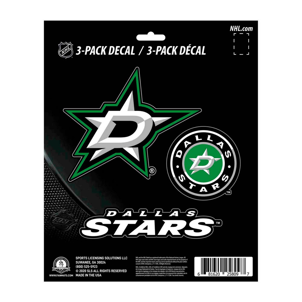 | Dallas Stars 3 Piece Decal Sticker Set Includes 3 various size decals on a 5in x 6in sheet Adhesive decals are die-cut to shape Printed on premium vinyl material UV resistant lamination for outstanding durability Great for cars, laptops, coolers and other hard surfaces Approximately 5in x 6.25in NHL - Dallas Stars in Texas NHL National Hockey League |