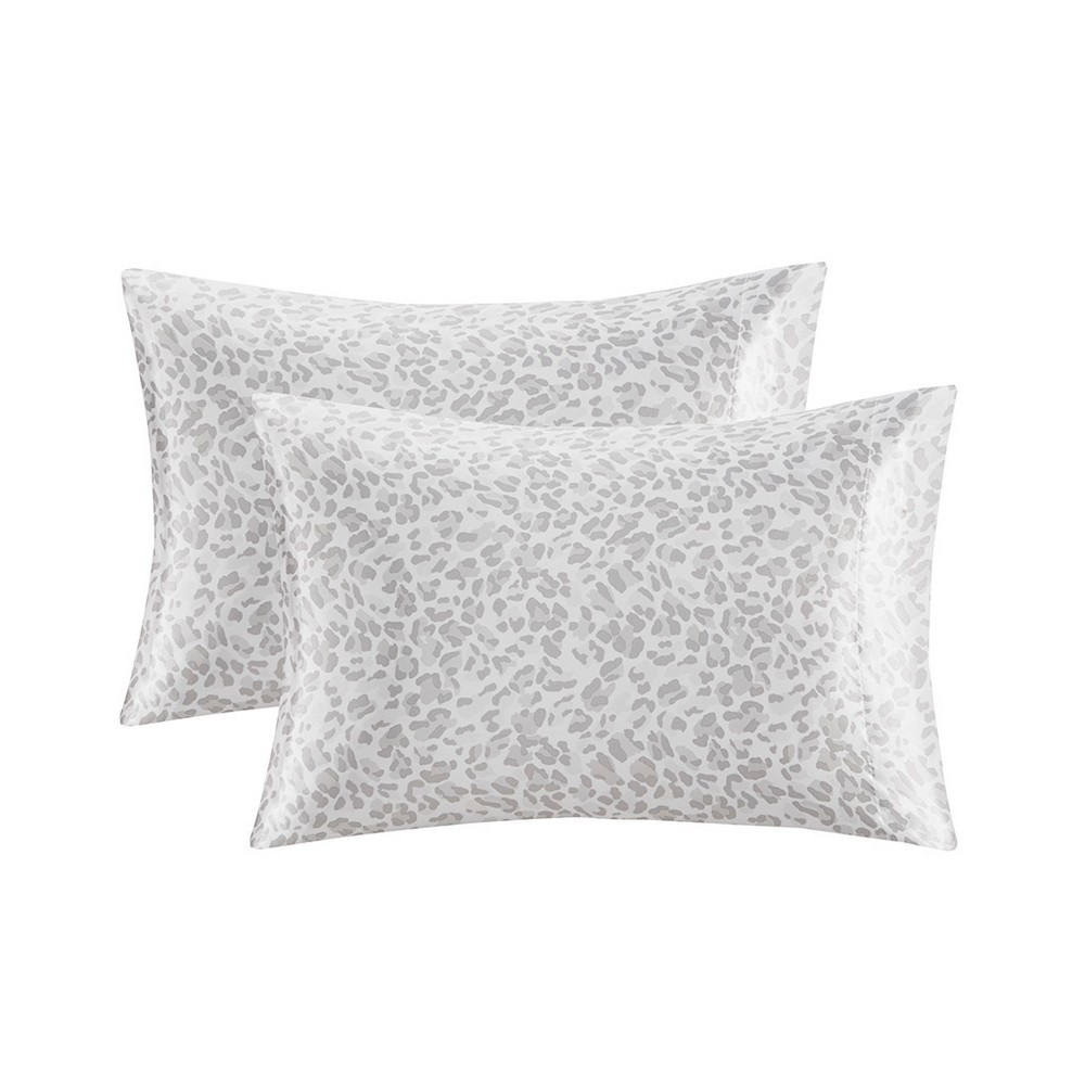 Printed Satin Gray Leopard Luxury 2 PC Pillowcases