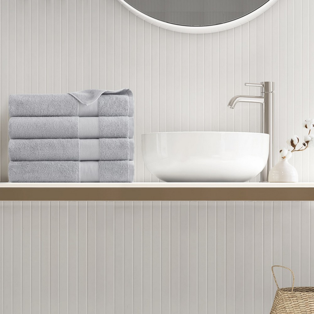 | Comfort Spaces 4-Piece 4 Bath Towels: 27"W x 54"L (4) 100% Turkish Cotton/500gsm Casual Style Includes 4 Piece(s) Wash before first use. Machine wash warm on gentle cycle with like colors. Only use non-chlorine bleach when needed. Avoid contact with products containing benzoyl peroxide. Do not wash with sharp items that may pull the towel fibers, such as zippers or hooks. To maintain the quality and performance of your towels, avoid the use of fabric softeners and dry sheets. Tumble dry low, remove promptly. Do not iron. Before use, simply shake towels to restore fluff and pile. Live in luxury with our soft 100% Turkish cotton 500 GSM towel set, balanced for both breathability and absorbency. Woven in durable, premium long-fiber threads for a more natural hand feel, these quick-dry terry towels are also designed to resist fading and minimize lint, providing spa-like comfort during any occasion. Revamp your everyday bathroom routine with the gift of our classic towel set including a locker loop, crafted to keep everything sparkling clean wherever you go. Additionally, this set holds an Oeko-Tex certification, ensuring our dedication to safety and gentle, non-irritating skin contact. |