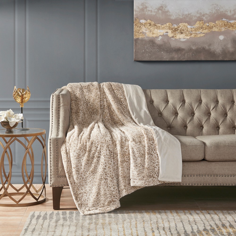 | Madison Park 50x60" 1 Throw: 50"W x 60L" Face:250gsm serengeti fur Back:180gsm mink solid Style Includes 1 Piece(s) Machine Washable The Madison Park Zuri throw features a luxuriously soft faux fur and reverses to a solid faux mink. This faux fur throw is the perfect modern update and adds a glamorous accent to your home. This throw is machine washable for easy care and OEKO-TEX certified, meaning it does not contain any harmful substances or chemicals to ensure quality comfort and wellness. The item may come in a rolled or compressed packaging, which will need to be fluffed up or steam ironed before use to remove wrinkles. |