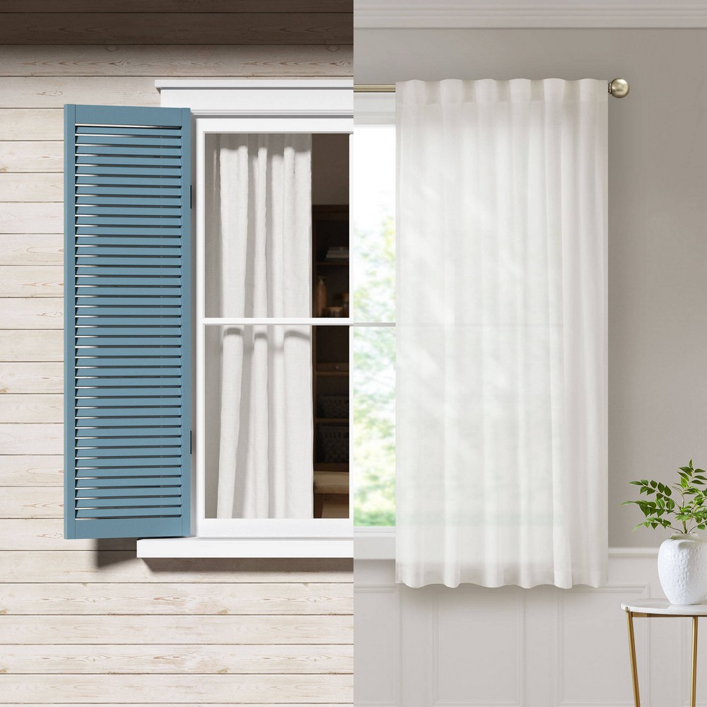 | Madison Park 52x63" 2 Window Panels: 52"W x 63"L (2) 100% Polyester Modern/Contemporary Style Includes 2 Piece(s) Machine washable for easy care Keep your room vibrant while maintaining total privacy with our semi-transparent transitional window curtains. Crafted from silky smooth, non-see-through fabric, these lightweight curtains allow for an optimal amount of natural daylight while blocking any outside visibility at night, fostering a tranquil atmosphere for your home at all times. Offering a soft light filter during the day that obscures your place from prying eyes, these curtains impress with their smooth texture and ability to evoke a cozy, inviting environment compared to traditional sheers. |