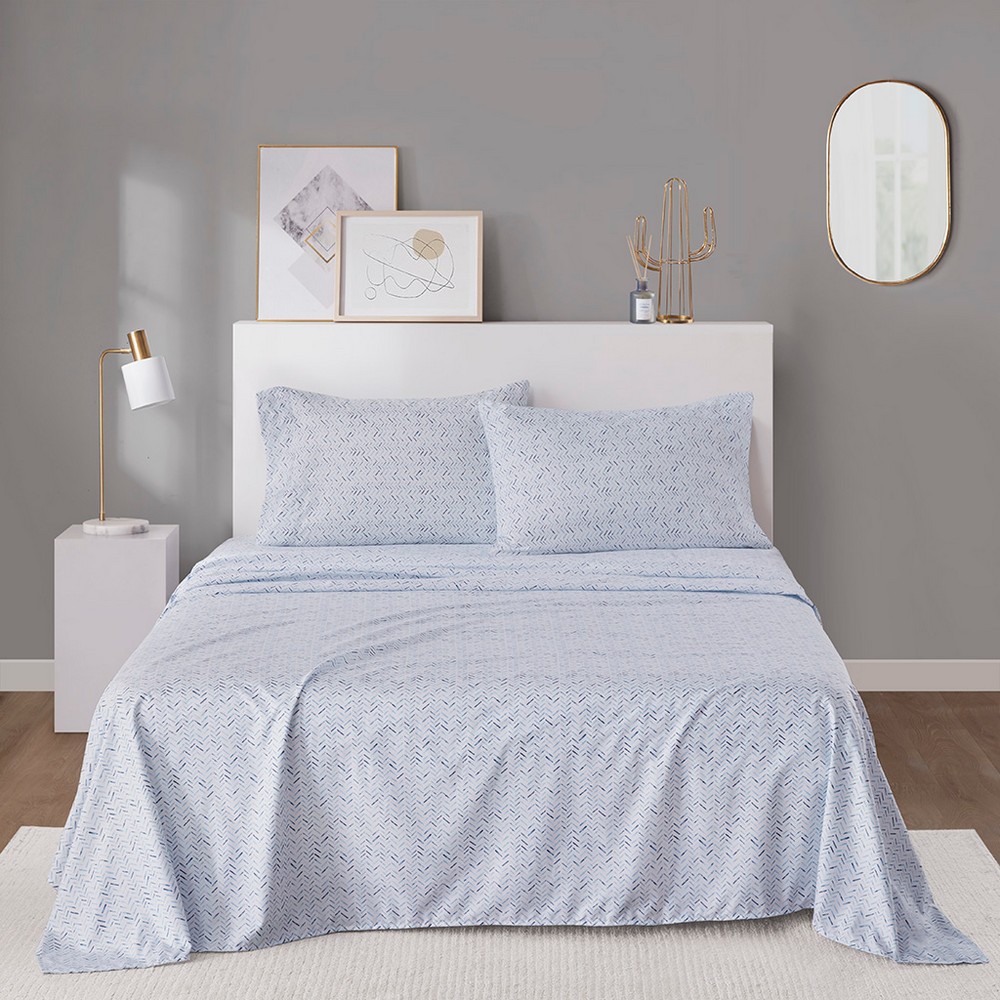 | Intelligent Design Full 1 Flat Sheet: 81"W x 96"L 1 Fitted Sheet: 54"W x 75"L + 14"D 2 Pillowcases: 20"W x 30"L (2) 100% polyester microfiber printed Casual Style Includes 4 Piece(s) Machine Washable Refresh and revitalize your bedroom with the stylish charm of this printed microfiber sheet set. Soft and smooth, these wrinkle free sheets feature a cheerful and bold print to create an eye-catching, casual look that is perfect for all seasons. As a bonus, these sheets are benzoyl peroxide-resistant so you can sleep soundly in your night face creams without fear of damaging your sheets. Machine washable, these microfiber sheets bring a pop of color and allow you to really express your style. |