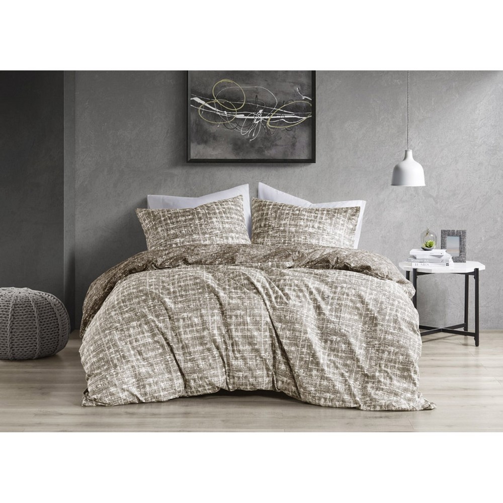 Maca Taupe Textured Print Reversible Duvet Set Twin