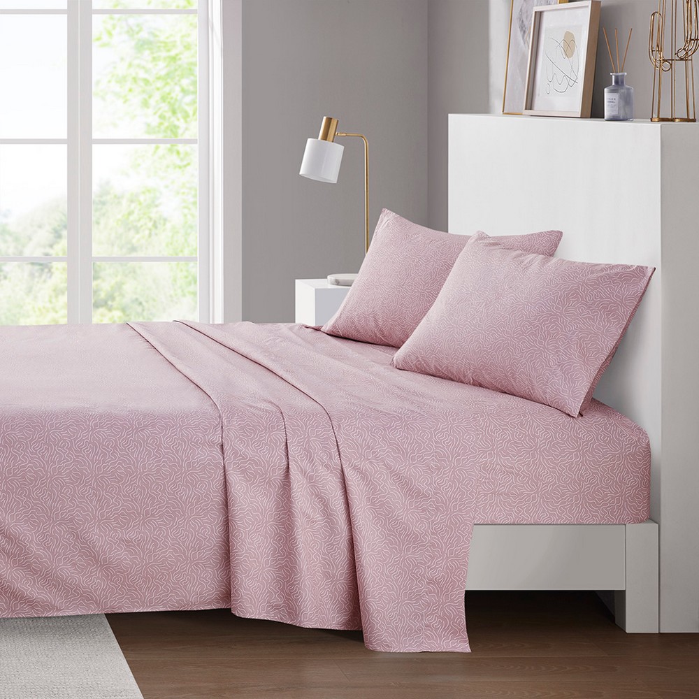 | Intelligent Design Queen 1 Flat Sheet: 90"W x 102"L 1 Fitted Sheet: 60"W x 80"L + 14"D 2 Pillowcases: 20"W x 30"L (2) 100% polyester microfiber printed Casual Style Includes 4 Piece(s) Machine washable Refresh and revitalize your bedroom with the stylish charm of this printed microfiber sheet set. Soft and smooth, these wrinkle free sheets feature a cheerful and bold print to create an eye-catching, casual look that is perfect for all seasons. As a bonus, these sheets are benzoyl peroxide-resistant so you can sleep soundly in your night face creams without fear of damaging your sheets. Machine washable, these microfiber sheets bring a pop of color and allow you to really express your style. |