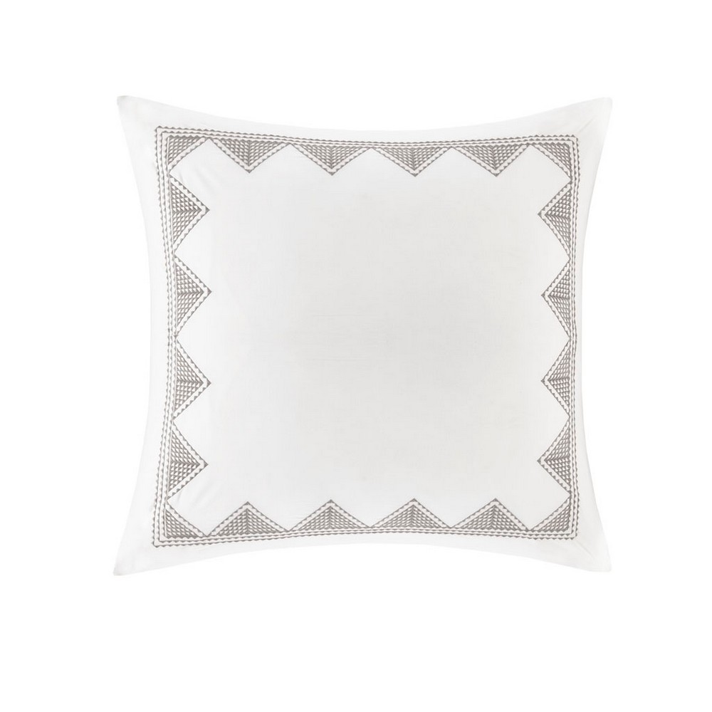 | Ink+ivy Euro Sham 1 Euro Sham: 26x26" 200TC cotton, embroidered, hidden zipper Vintage/Shabby Chic Style Includes 1 Piece(s) MACHINE WASH COLD, GENTLE CYCLE, AND SEPARATELY. DO NOT BLEACH. TUMBLE DRY LOW, REMOVE PROMPTLY, DO NOT IRON. IF THERE IS NO FREE MOVEMENT IN THE WASHER OR DRYER, USE LARGE CAPACITY COMMERCIAL WASHER/DRYER. Add a touch of drama to your bedding with the INK+IVY Isla Euro Sham. This 26x26" sham features a geometric design embroidered along the edge of a white ground. This sham features a topical antimicrobial treatment that prevents bacteria buildup to keep the fabric fresher, longer. This euro pillow cover can be easily mixed and matched with your home decor to create that perfect look. Inlcudes one euro pillow cover, Filler pillow is NOT included. |