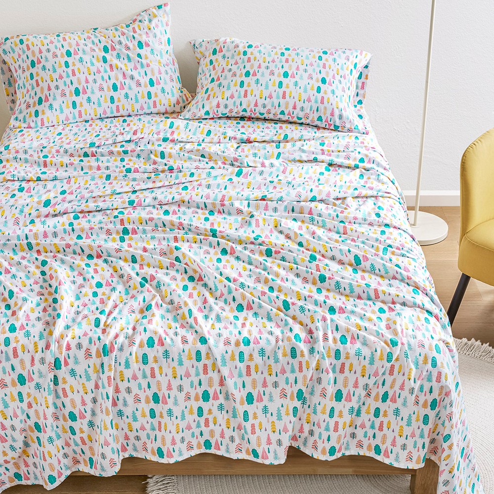 | Intelligent Design Twin 1 Flat Sheet: 66"W x 96"L 1 Fitted Sheet: 39"W x 75"L + 12"D 1 Standard Pillowcase: 20"W x 30"L 100% Cotton printed flannel Casual Style Includes 3 Piece(s) Machine Washable This warm cotton flannel sheet set features a fun novelty print to create a cute look with a comfortable feel. These sheets are also OEKO-TEX certified, meaning they do not contain any harmful substances or chemicals, ensuring quality comfort and wellness. Machine washable for easy care, this sheet set is perfect for keeping you warm and cozy through the night, while adding a delightful touch to your bedroom decor. Set includes: 1 Flat Sheet, 1 Fitted Sheet, and 2 Pillowcases (1 in Twin/TwinXL sizes). |